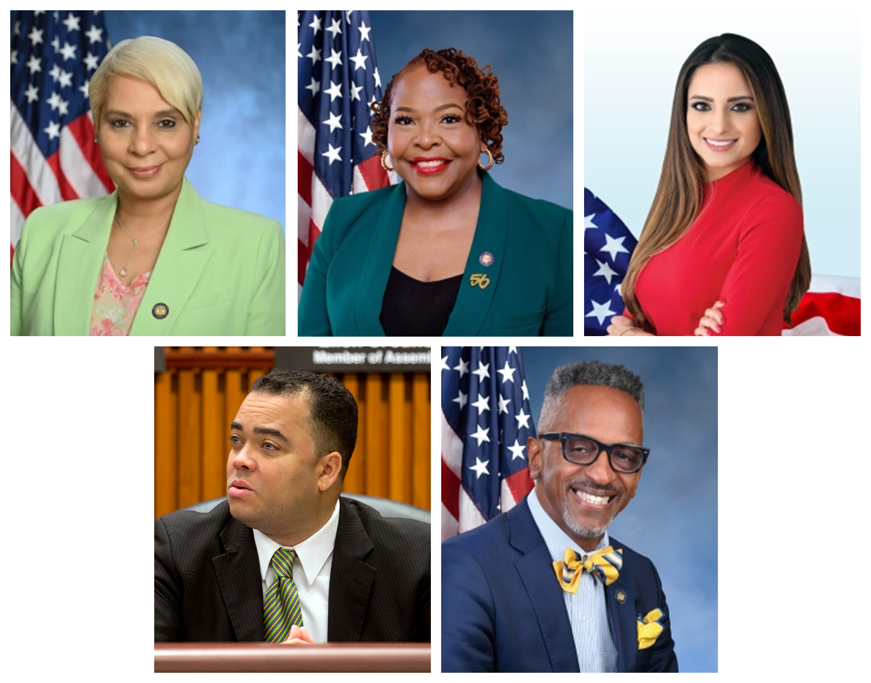 Clockwise, from top left: Assemblymembers Maritza Davila, Stefani Zinerman, Jenifer Rajkumar, Al Taylor and Erik Dilan.